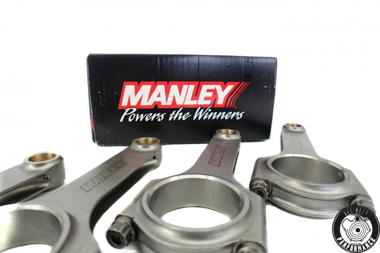 Manley is one of the top manufacturers of connecting rods. The connecting rods have an H-profile and are forged from high-strength 4340 steel. The connecting rods are already angled and balanced, with 1 gram tolerance over the entire set!